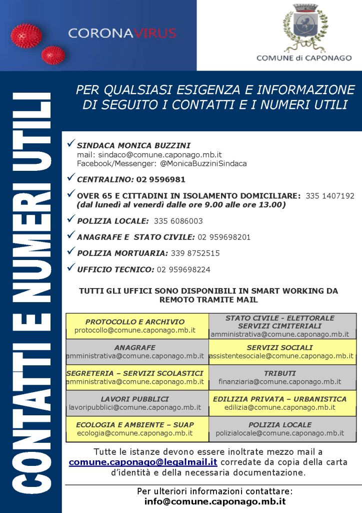 Il Presidente Luca Santambrogio ha chiesto ai Sindaci MB di diffondere, attraverso i canali di comunicazione istituzionale (sito internet o profili sui Social Network), le informazioni utili con i numeri da contattare e gli indirizzi dei gruppi di volontariato di Protezione Civile (o di Polizia Locale) a cui fare riferimento per poter effettuare la consegna delle maschere nel rispetto delle prescrizioni sugli spostamenti.